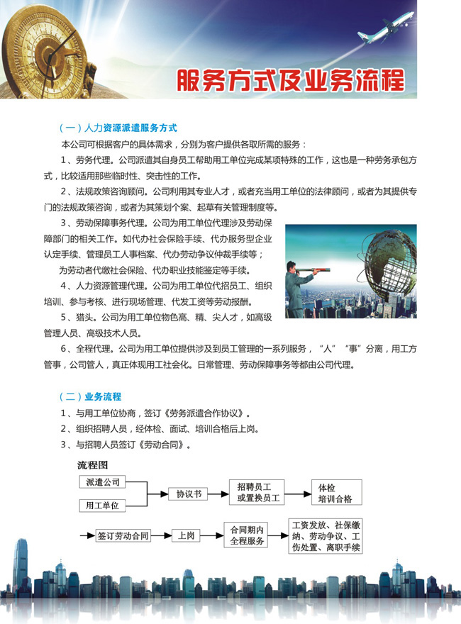 1、為用工單位招聘員工并提供崗前培訓(xùn)服務(wù)。